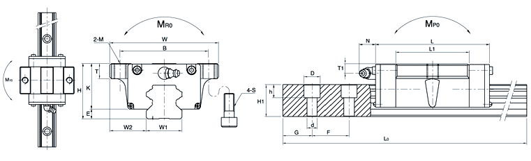 宽度高度孔间距安装孔尺寸G导轨最大动负载静负载静态扭矩滑块滑轨
